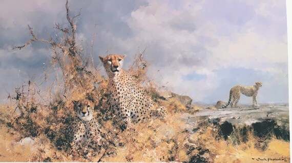 Original Vintage Print By David Shepherd 1992 Cheetah Wall Etsy